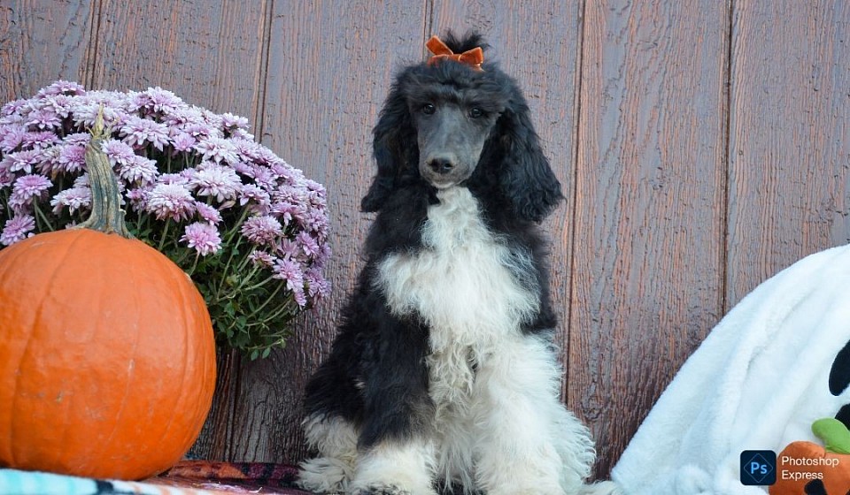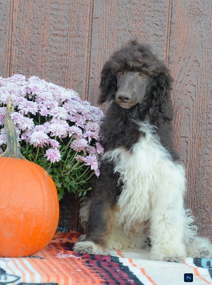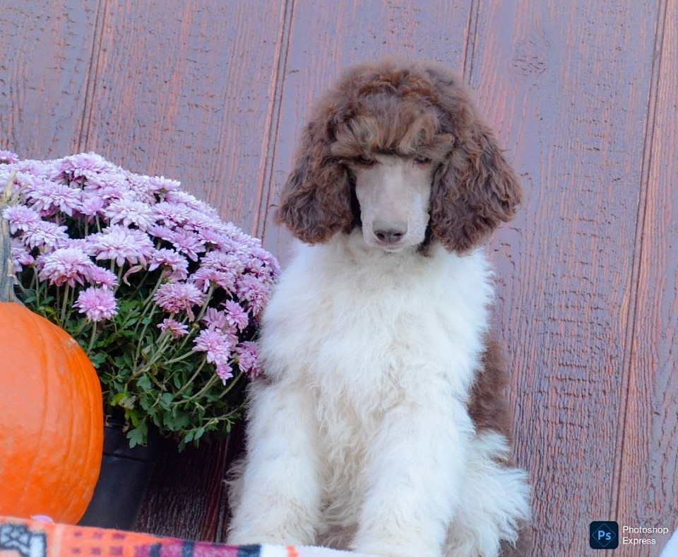 Introducing our beautiful AKC Standard Poodle litter, the litter theme is "The Looney Tunes" This litter is absolutely beautiful and has some amazing variety of colors. Puddles is a beautiful Black/White Parti and is around 50 lbs and Victor is a chocolate phantom parti that is around 55/60 lbs. We are expecting this litter to get around 50-60 lbs. They were born June 18th and will be ready for new homes end of August. They will be vey checked and will come with 1 year health guarantee
