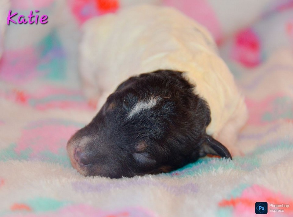 Introducing Katie ! Katie is a beautiful Phantom Black/White Parti female. She is just stunning! Rosie is the momma, and she is 45 ish lbs and Fraser the daddy is 27 lbs. She will be around 25-40 lbs. I have paired this couple now 3 times, they produce the absolute best temperaments and stunning dogs. Katie will be very loved by our family until she finds her forever family. She will be UTD on vaccines and will be vet checked and will come with 1 year health guarentee. Rosie and Frased are clear for genetics along with OFA hips/elbows done. Katie will be ready for her new home May 26th, his price is $1,500.00