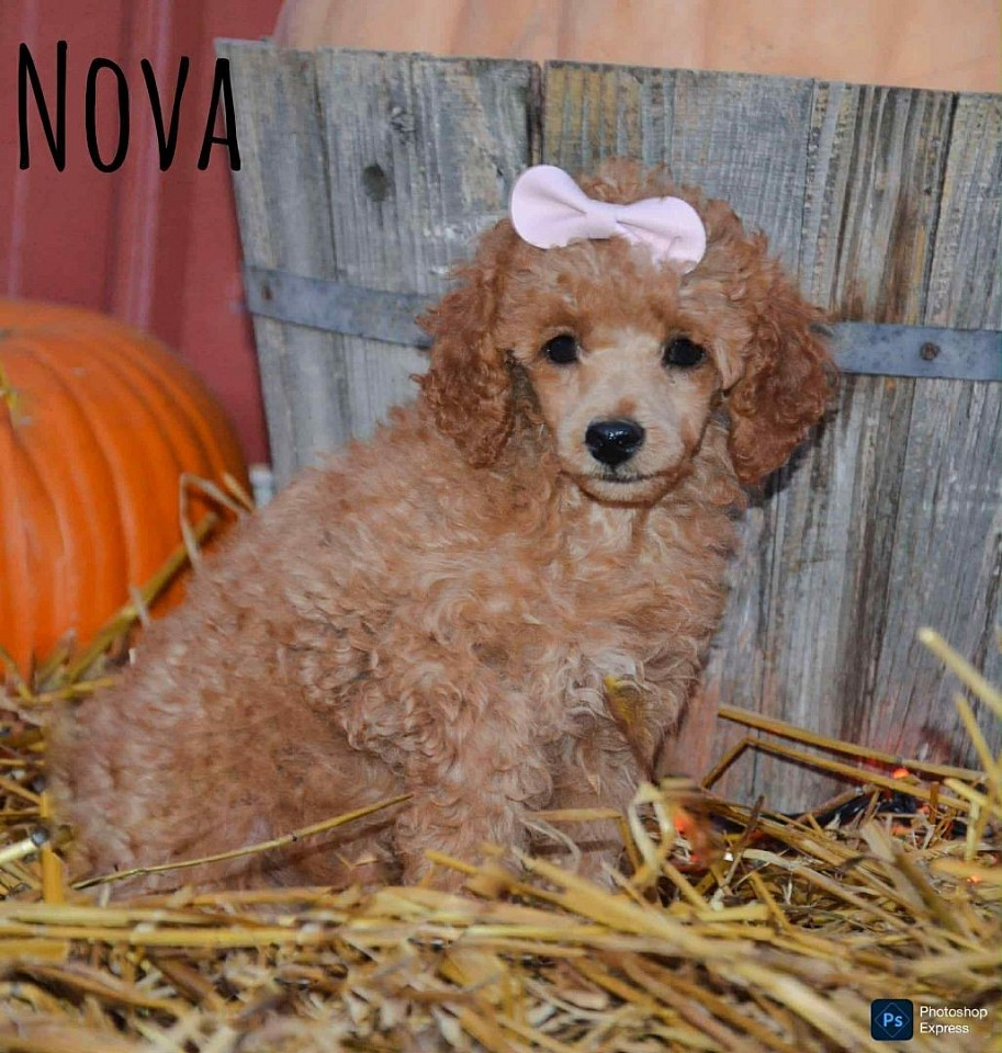 Hello my name is Nova. I am a beautiful Apricot AKC Mini Poodle female. My mamma is 10lbs, and my daddy is 17lbs. I will probably be around 12/17lbs when I get all grown up. I will be loved by my family and held and socialized until I come to my new home. I will be UTD on all my vaccines and will come with 1 year of health guarantee along with our High Standard bag full of helpful information and toys. My pet price will be $1500, but more if you want breeding rights. Contact my wonderful parents if you would like to adopt me.