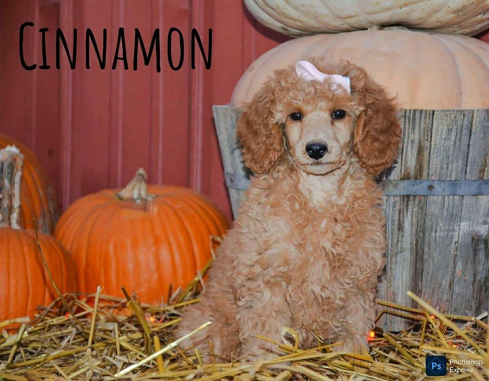 Hello my name is Cinnamon. I am a beautiful Apricot AKC Mini Poodle female. My mamma is 17lbs, and my daddy is 17lbs. I will probably be around 17lbs when I get all grown up. I will be loved by my family and held and socialized until I come to my new home. I will be UTD on all my vaccines and will come with 1 year of health guarantee along with our High Standard bag full of helpful information and toys. My pet price will be $1500, but more if you want breeding rights. Contact my wonderful parents if you would like to adopt me.