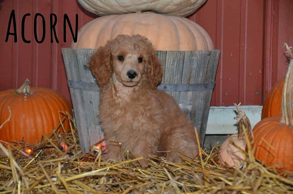 Hello my name is Acorn. I am a beautiful Apricot AKC Mini Poodle female. My mamma is 17lbs, and my daddy is 17lbs. I will probably be around 17lbs when I get all grown up. I will be loved by my family and held and socialized until I come to my new home. I will be UTD on all my vaccines and will come with 1 year of health guarantee along with our High Standard bag full of helpful information and toys. My pet price will be $1500, but more if you want breeding rights. Contact my wonderful parents if you would like to adopt me.