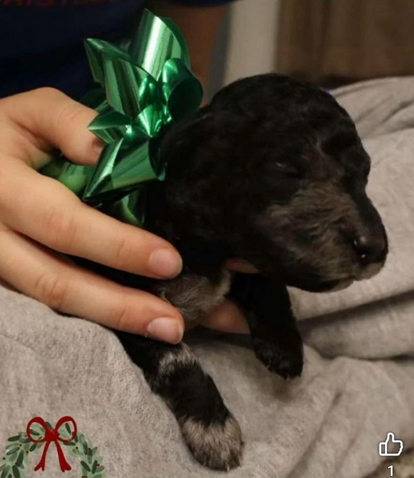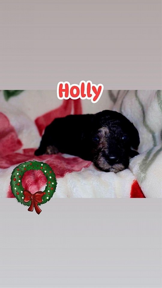 Hello my name is Holly, and I will be ready for Christmas!!! I am a beautiful dark Blue merle, AKC Small standard (moyen) Poodle female. My mamma is 40lbs, and my daddy is 17lbs. I will probably be around 25/35lbs when I get all grown up. I will be loved by my family and held and socialized until I come to my new home. I will be UTD on all my vaccines and will come with 1 year of health guarantee along with our High Standard bag full of helpful information and toys. My pet price will be $2,000, but more if you want breeding rights. Contact my wonderful parents if you would like to adopt me.