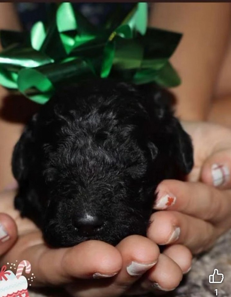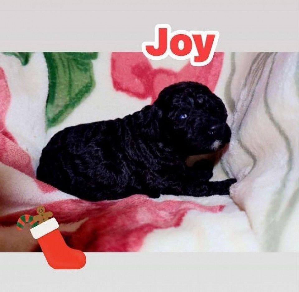 Hello my name is Joy, and I will be ready for Christmas!!! I am a beautiful solid black, AKC Small Standard (Moyen) Poodle female. My mamma is 40lbs, and my daddy is 17lbs. I will probably be around 24/35lbs when I get all grown up. I will be loved by my family and held and socialized until I come to my new home. I will be UTD on all my vaccines and will come with 1 year of health guarantee along with our High Standard bag full of helpful information and toys. My pet price will be $1,500, but more if you want breeding rights. Contact my wonderful parents if you would like to adopt me.