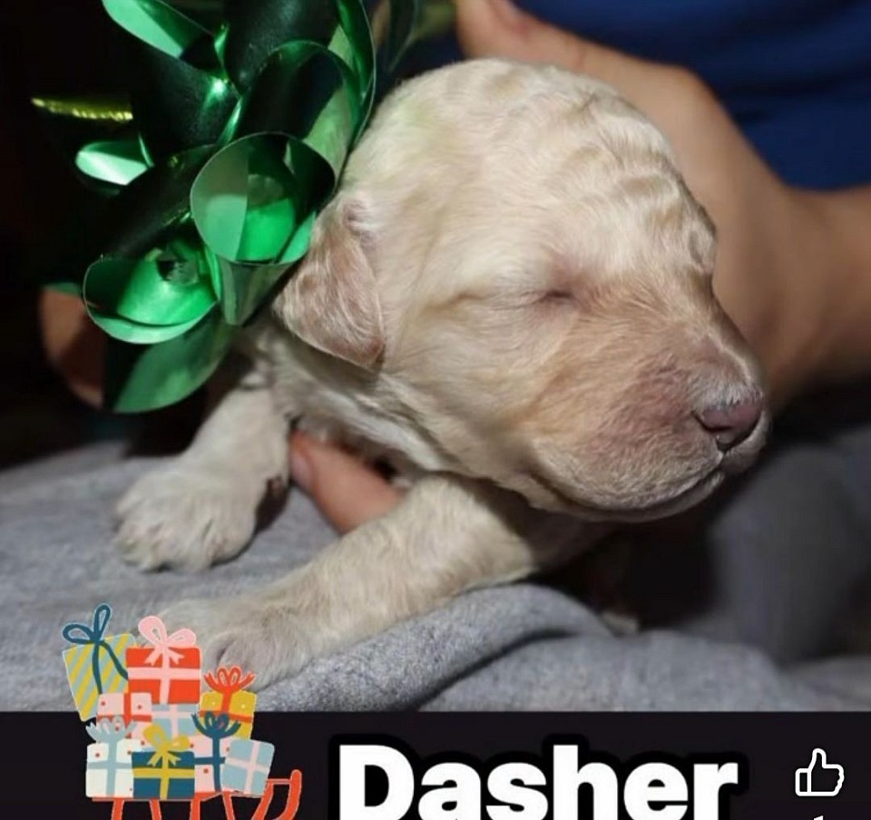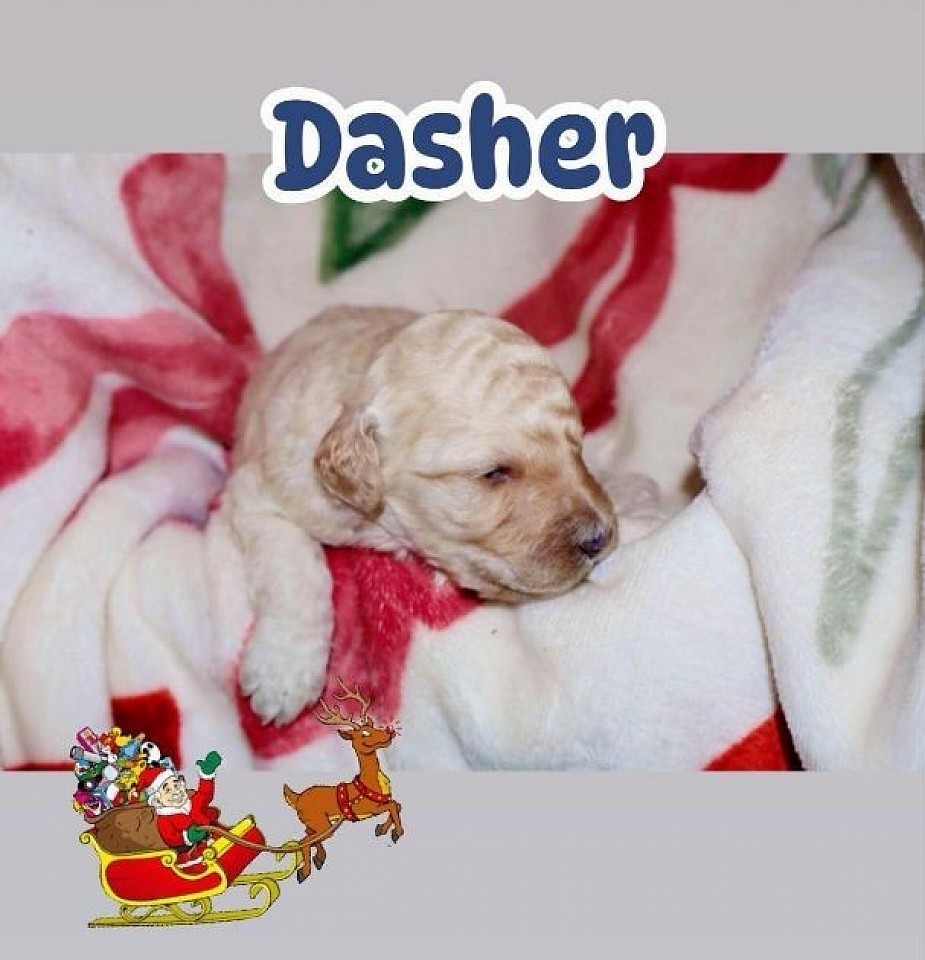 Hello my name is Dasher, and I will be ready for Christmas!!! I am a beautiful solid Apricot, AKC Small Standard (Moyen) Poodle female. My mamma is 40lbs, and my daddy is 17lbs. I will probably be around 24/35lbs when I get all grown up. I will be loved by my family and held and socialized until I come to my new home. I will be UTD on all my vaccines and will come with 1 year of health guarantee along with our High Standard bag full of helpful information and toys. My pet price will be $1,500, but more if you want breeding rights. Contact my wonderful parents if you would like to adopt me.