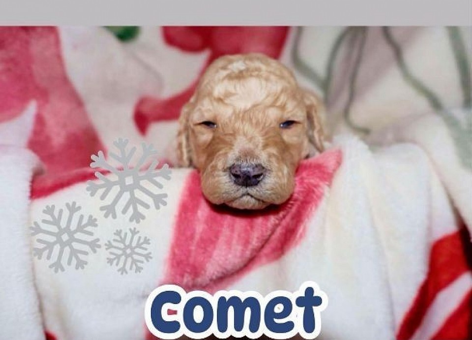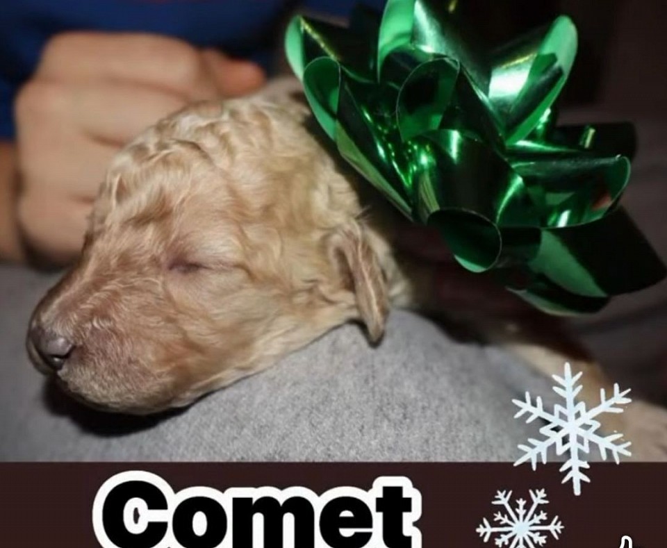 Hello my name is Comet, and I will be ready for Christmas!!! I am a beautiful solid apricot, AKC Small Standard (Moyen) Poodle male. My mamma is 40lbs, and my daddy is 17lbs. I will probably be around 24/35lbs when I get all grown up. I will be loved by my family and held and socialized until I come to my new home. I will be UTD on all my vaccines and will come with 1 year of health guarantee along with our High Standard bag full of helpful information and toys. My pet price will be $1,500, but more if you want breeding rights. Contact my wonderful parents if you would like to adopt me.