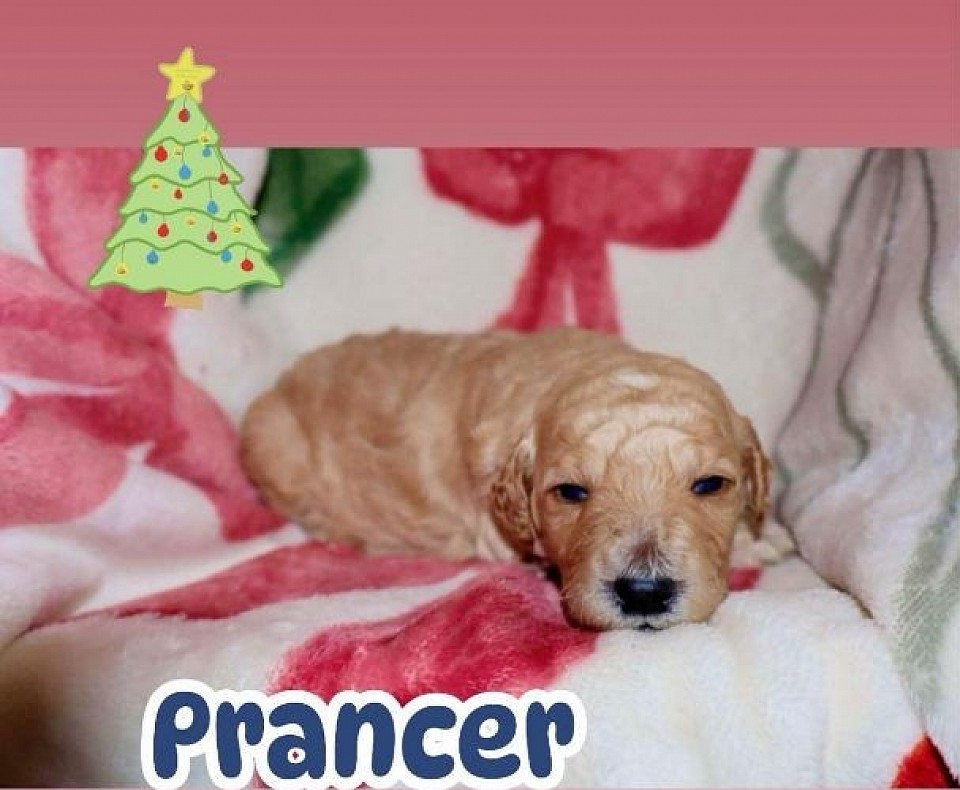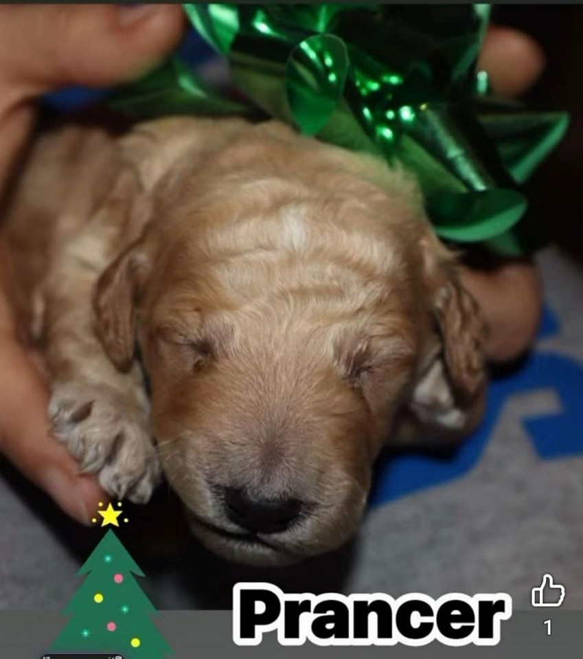 Hello my name is Prancer, and I will be ready for Christmas!!! I am a beautiful solid apricot, AKC Small Standard (Moyen) Poodle male. My mamma is 40lbs, and my daddy is 17lbs. I will probably be around 24/35lbs when I get all grown up. I will be loved by my family and held and socialized until I come to my new home. I will be UTD on all my vaccines and will come with 1 year of health guarantee along with our High Standard bag full of helpful information and toys. My pet price will be $1,500, but more if you want breeding rights. Contact my wonderful parents if you would like to adopt me.