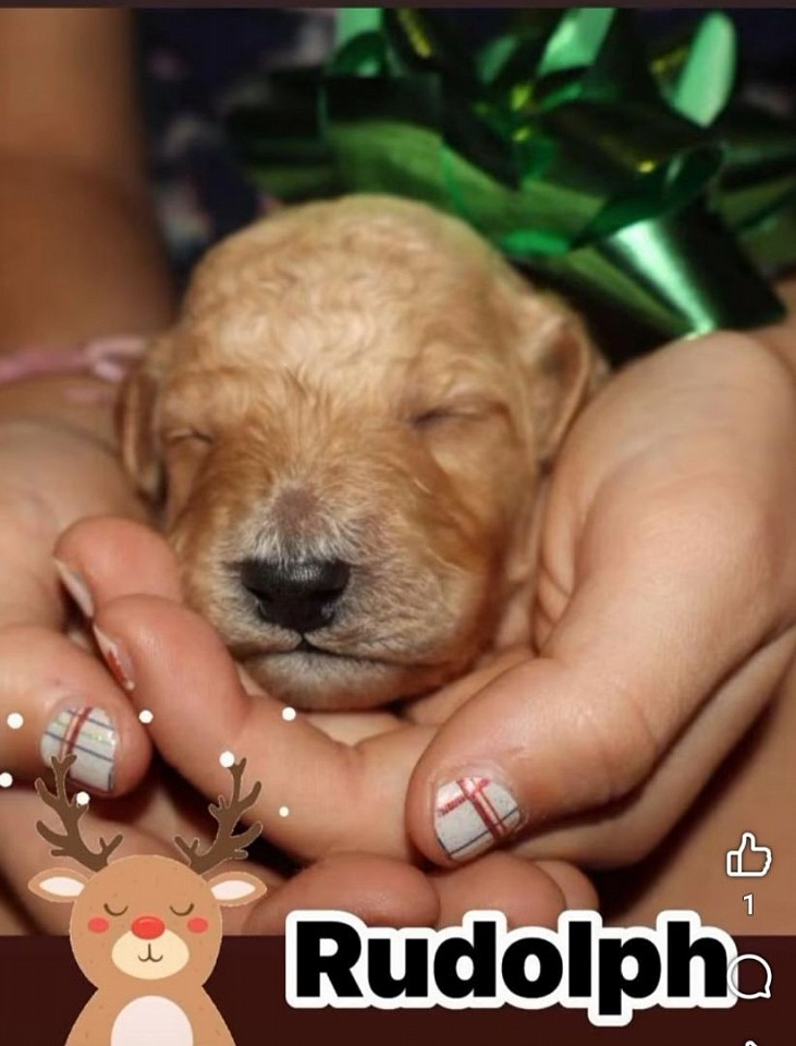 Hello my name is Roudolph, and I will be ready for Christmas!!! I am a beautiful solid apricot, AKC Small Standard (Moyen) Poodle male. My mamma is 40lbs, and my daddy is 17lbs. I will probably be around 24/35lbs when I get all grown up. I will be loved by my family and held and socialized until I come to my new home. I will be UTD on all my vaccines and will come with 1 year of health guarantee along with our High Standard bag full of helpful information and toys. My pet price will be $1,500, but more if you want breeding rights. Contact my wonderful parents if you would like to adopt me.