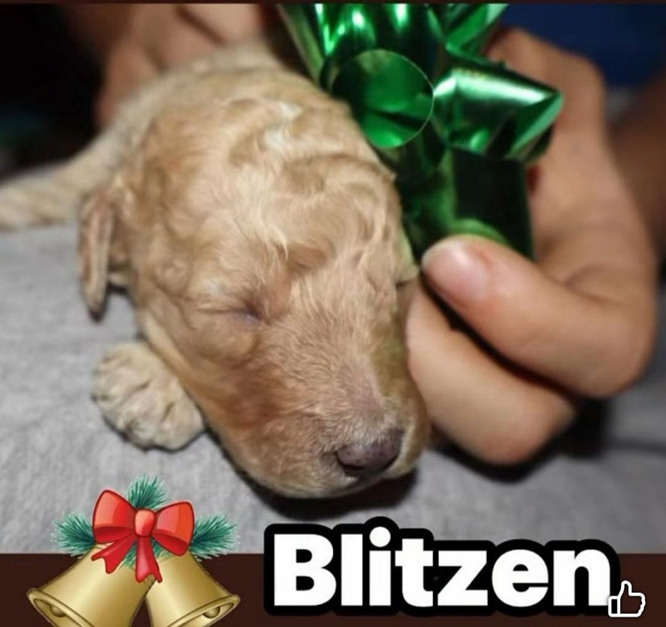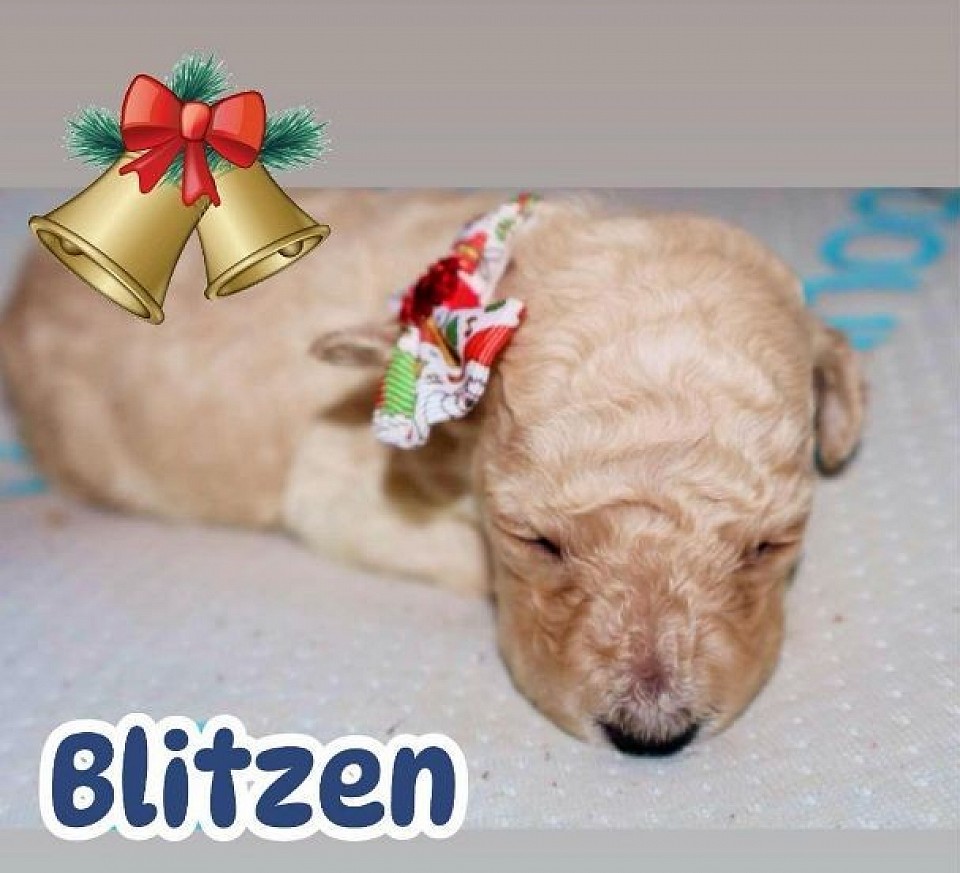 Hello my name is Blitzen, and I will be ready for Christmas!!! I am a beautiful solid apricot, AKC Small Standard (Moyen) Poodle male. My mamma is 40lbs, and my daddy is 17lbs. I will probably be around 24/35lbs when I get all grown up. I will be loved by my family and held and socialized until I come to my new home. I will be UTD on all my vaccines and will come with 1 year of health guarantee along with our High Standard bag full of helpful information and toys. My pet price will be $1,000, but more if you want breeding rights. Contact my wonderful parents if you would like to adopt me.