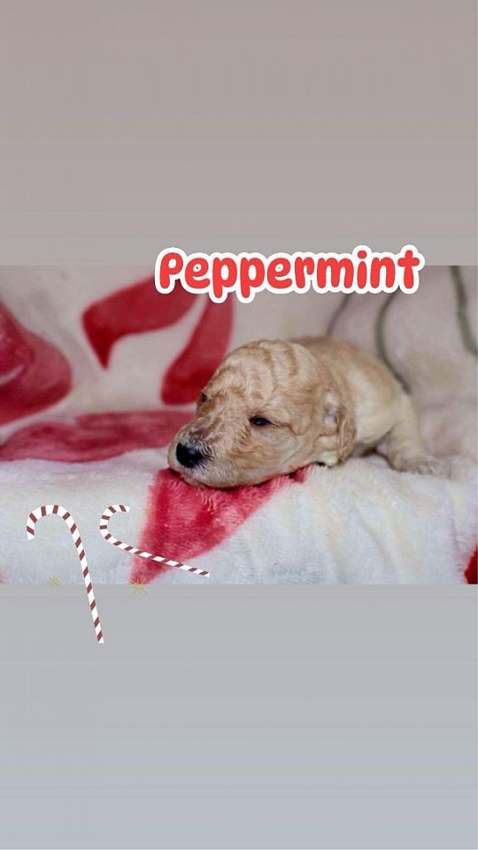 Hello my name is Peppermint, and I will be ready for Christmas!!! I am a beautiful solid Apricot, AKC Small Standard (Moyen) Poodle male. My mamma is 40lbs, and my daddy is 17lbs. I will probably be around 24/35lbs when I get all grown up. I will be loved by my family and held and socialized until I come to my new home. I will be UTD on all my vaccines and will come with 1 year of health guarantee along with our High Standard bag full of helpful information and toys. My pet price will be $1,500, but more if you want breeding rights. Contact my wonderful parents if you would like to adopt me.