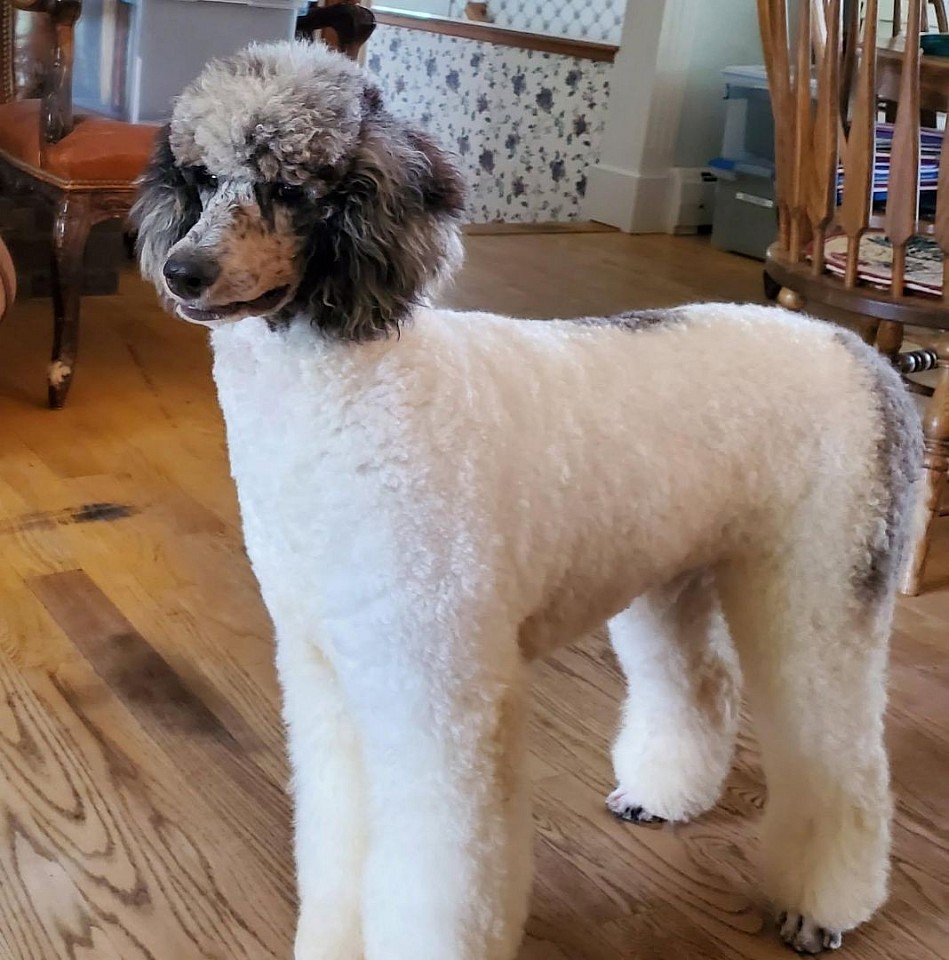 Meet Fraser! He is the beautiful phantom Poodle. He is kyky atat and Ssp. Fraser is proven male and his stud fee is $1,500 for stud service. (excluding AI) . He will be great for bernedoodles or Poodles. Frasier has had his OFA preliminary/good. Fraser is a lovely, happy, committed little boy, he has a wonderful personality. You don't want to miss out on this gem! Please scroll down the page to view the stud contract.